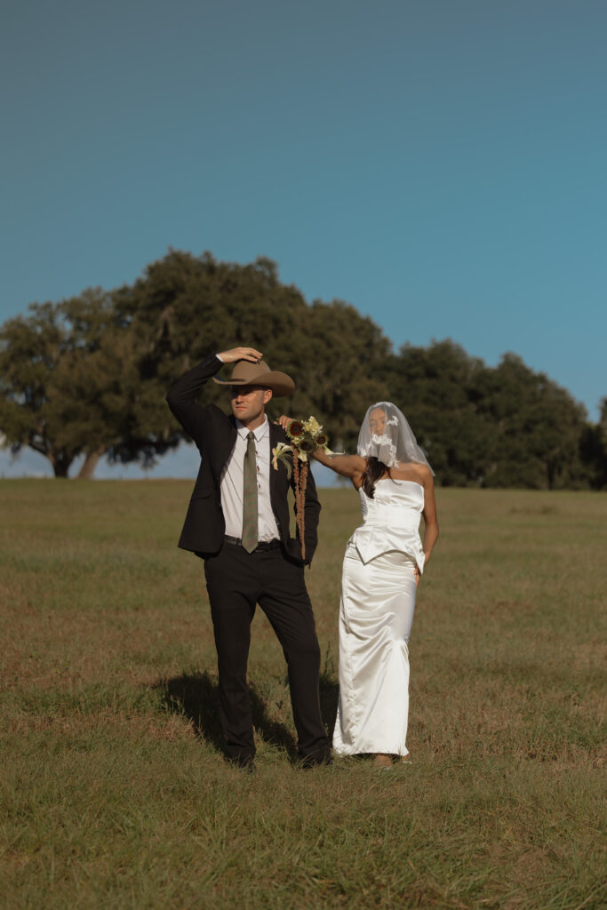 Tampa Wedding Venue Flora Groves Farm is one of those places that immediately makes you slow down. You pull in, the noise fades, and suddenly you’re surrounded by open fields, oak trees, and that kind of quiet that feels intentional. Just 20 minutes outside of downtown Tampa, the property feels tucked away in its own little world, which is truly part of its charm!!!