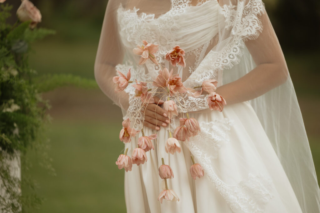 The first concept leaned into a modern boho garden feel! Soft fabrics moved gently in the breeze, while whimsical blooms added texture and color! Meanwhile, mossy greens grounded everything in an organic, effortless way. The open-air chapel glowed with natural light, setting the tone for romantic, editorial moments!