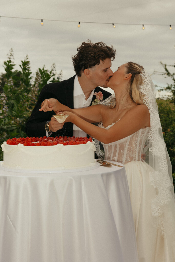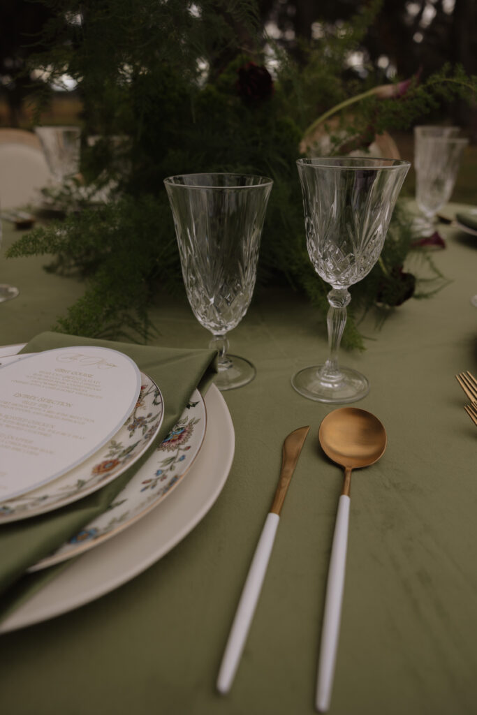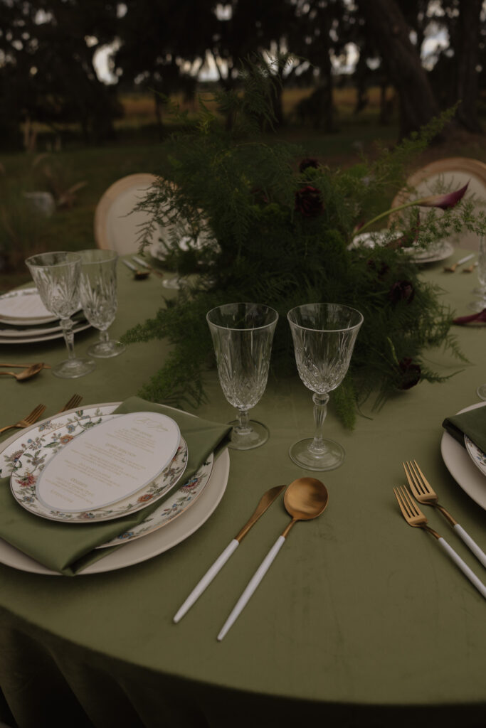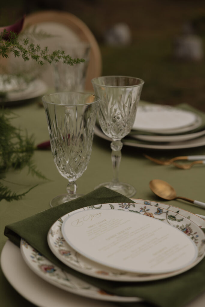 For the reception, the design leaned into an intimate, European-inspired feel. A round table dressed in rich green linens anchored the space, creating a warm, inviting moment that felt perfect for lingering conversations!! The cake became a true focal point: a large Italian-inspired wedding cake finished with fresh raspberries, adding a romantic, slightly playful touch. Altogether, every element felt intentional, editorial, and unforced, which is exactly what makes Flora Groves such a strong setting for storytelling and elevated imagery!
