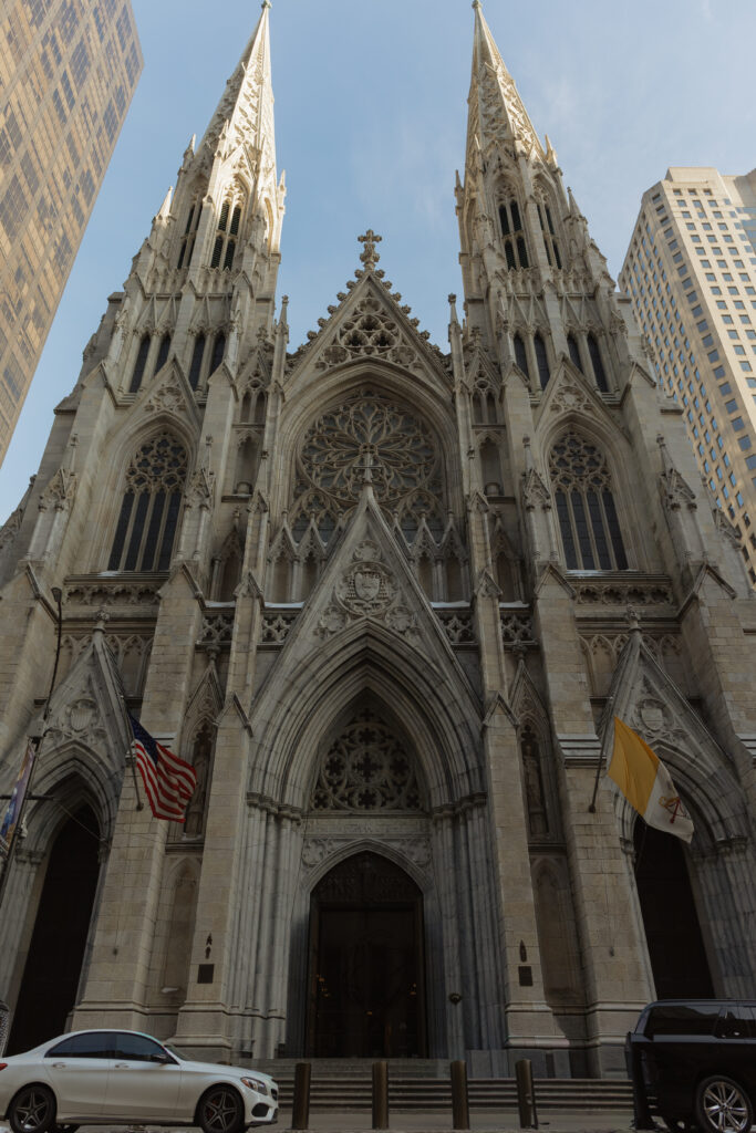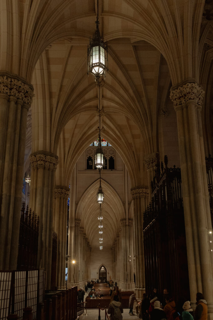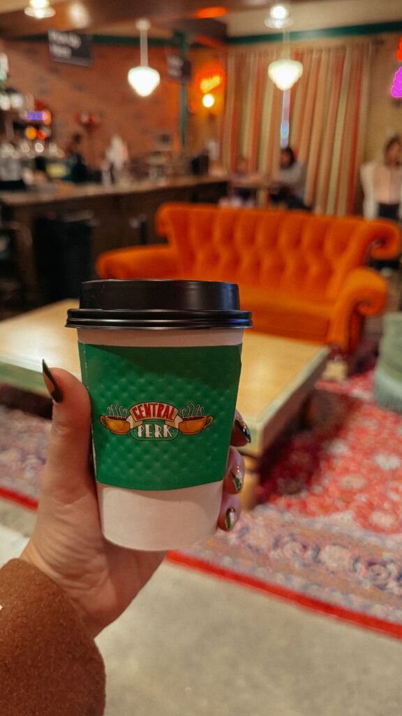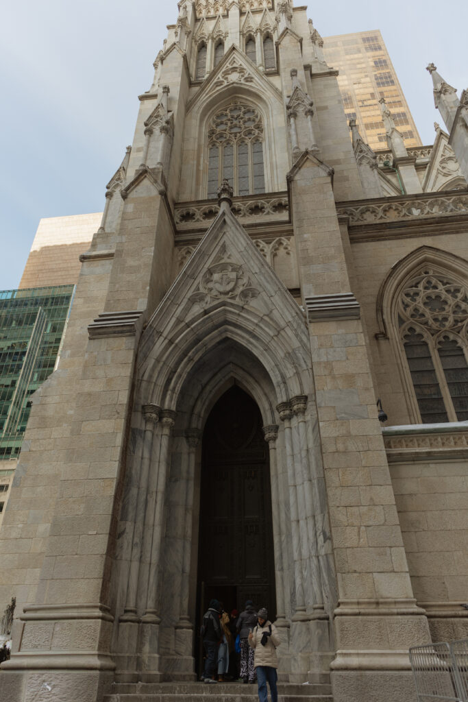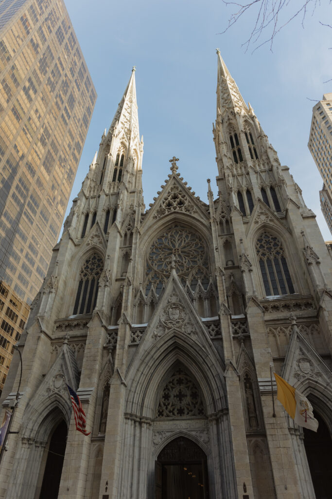 Saturday, though, was all about wandering! We grabbed coffee at Le Parisien Bakery which was fine, a little overpriced, and not super memorable food wise, but still a cute stop! Then we spent the day walking the theater district, popping into iconic spots like Macy’s, grabbing a street hot dog, visiting the Harry Potter store, and stopping by The Friends Experience where yes, I absolutely got coffee at Central Perk. One of my favorite stops of the day was St. Patrick’s Cathedral!!! It is stunning in person and instantly made me think about how magical it would be for a wedding ceremony! The light, the scale, the quiet in the middle of the city. This is exactly why New York City feels romantic!