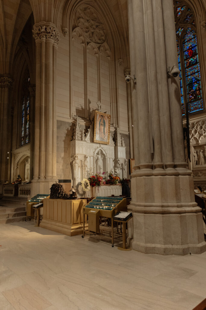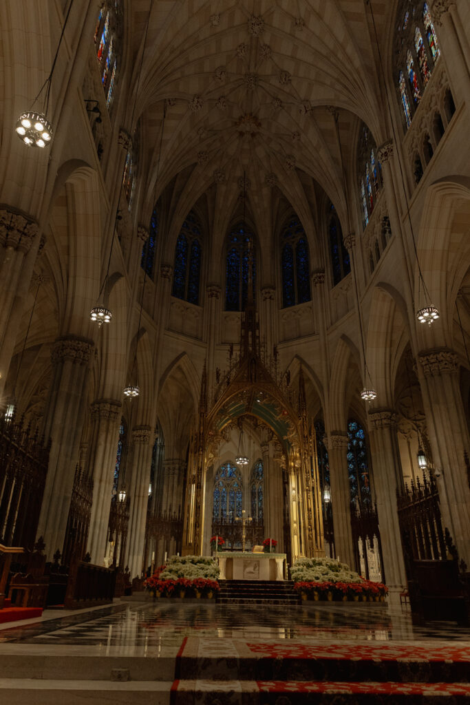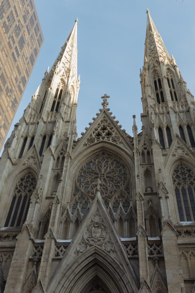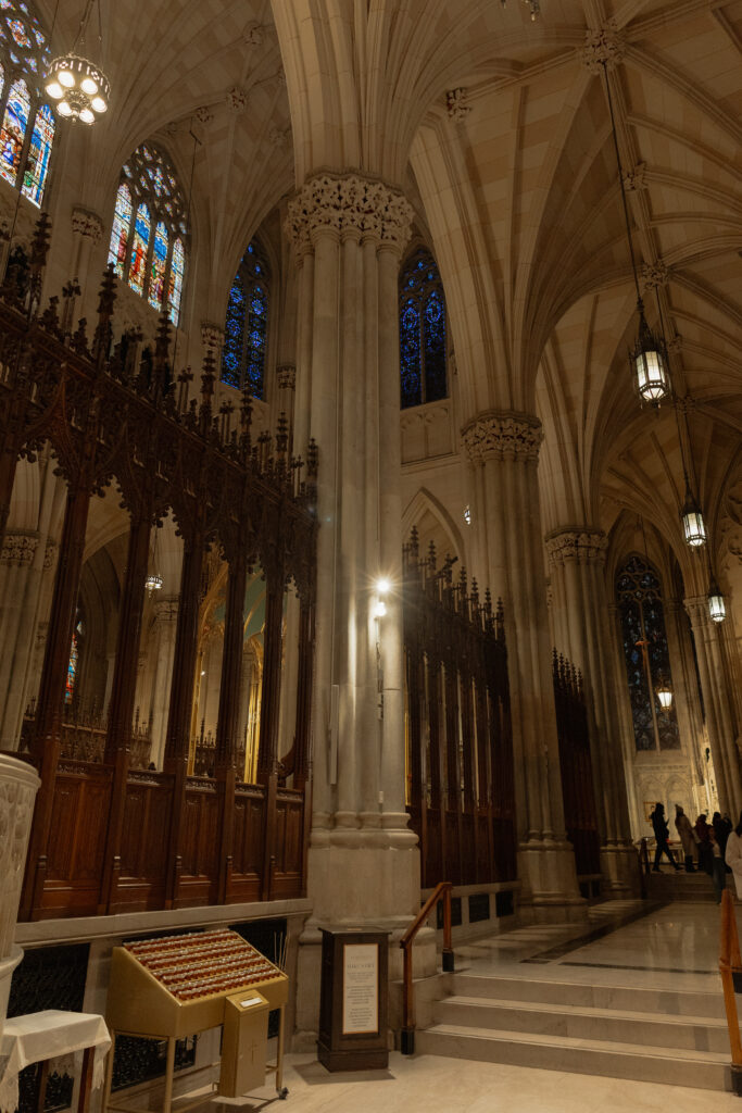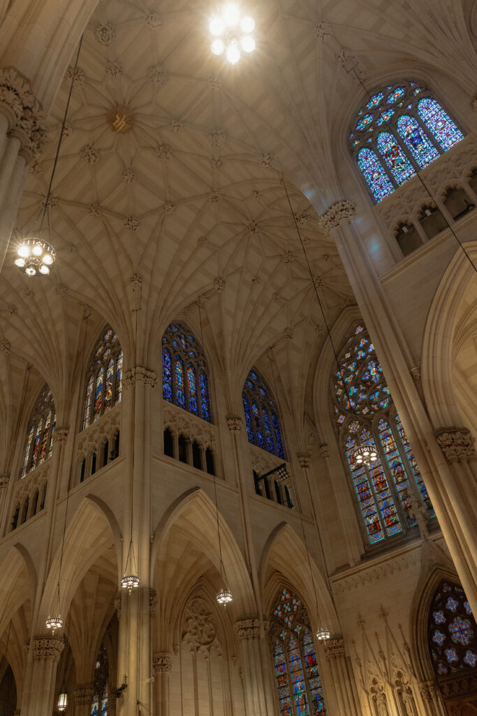 Saturday, though, was all about wandering! We grabbed coffee at Le Parisien Bakery which was fine, a little overpriced, and not super memorable food wise, but still a cute stop! Then we spent the day walking the theater district, popping into iconic spots like Macy’s, grabbing a street hot dog, visiting the Harry Potter store, and stopping by The Friends Experience where yes, I absolutely got coffee at Central Perk. One of my favorite stops of the day was St. Patrick’s Cathedral!!! It is stunning in person and instantly made me think about how magical it would be for a wedding ceremony! The light, the scale, the quiet in the middle of the city. This is exactly why New York City feels romantic!